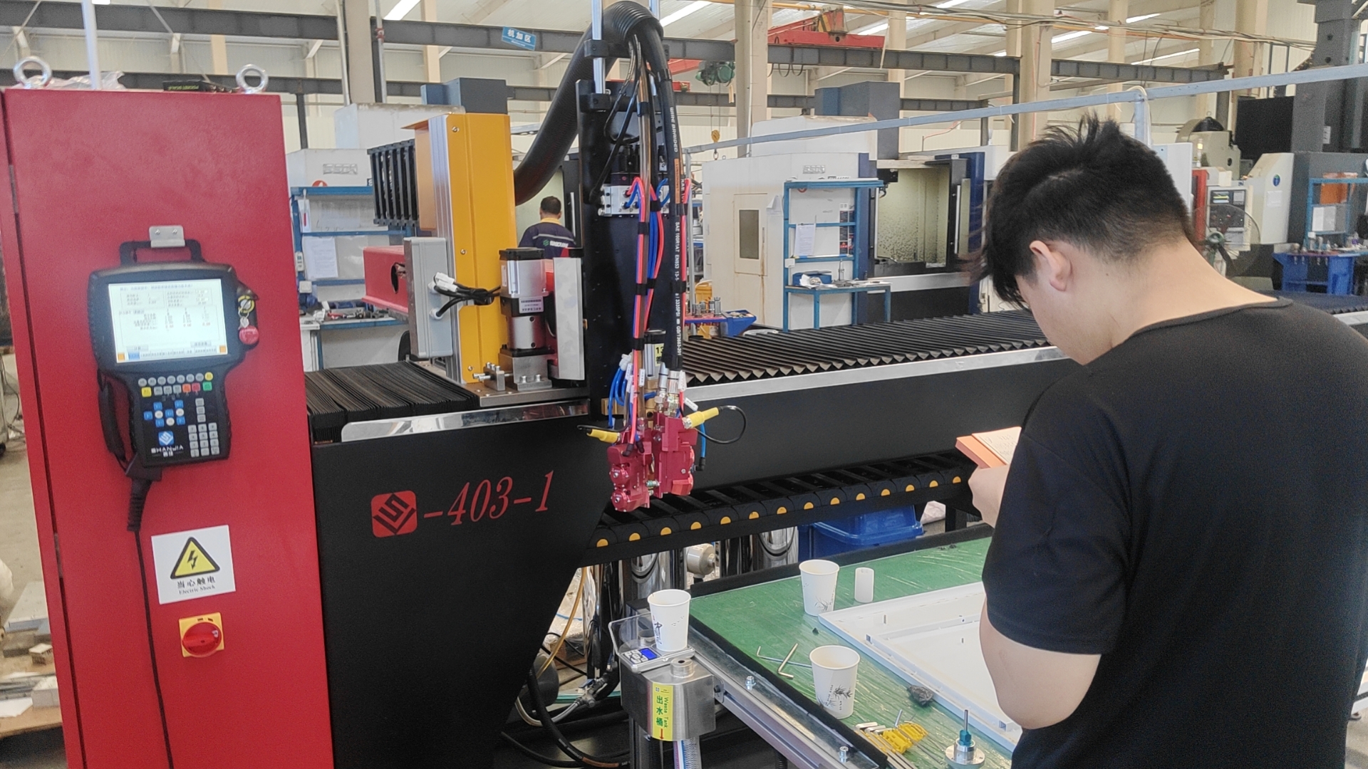 機柜行業(yè)的防水密封作業(yè)主要使用的自動化設備是善佳機械常量密封點膠機,這款設備加工膠條的范圍在5mm-30mm之間,完全可以滿足各類機柜的需要。